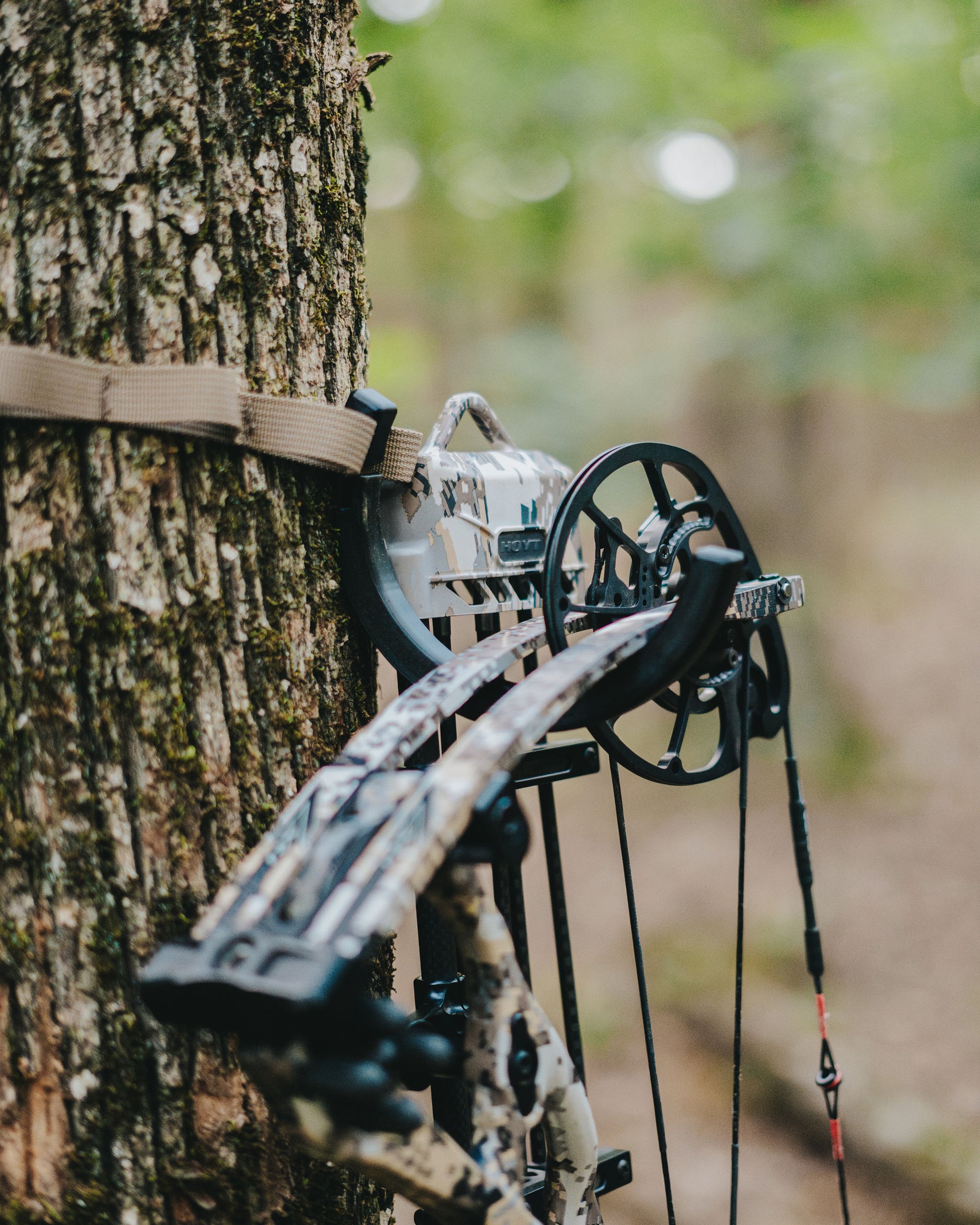 This Bow/Gear Holder is designed to securely hold your bow—whether or not a quiver is attached—offering more protection than just a minimal lip. It’s built for hunters who want peace of mind when it comes to their most critical piece of equipment. The holder quickly and easily attaches to a gear strap or Amsteel rope, and its sleek, low-profile design makes it easy to store without snagging or getting in the way. 15lbs weight limit