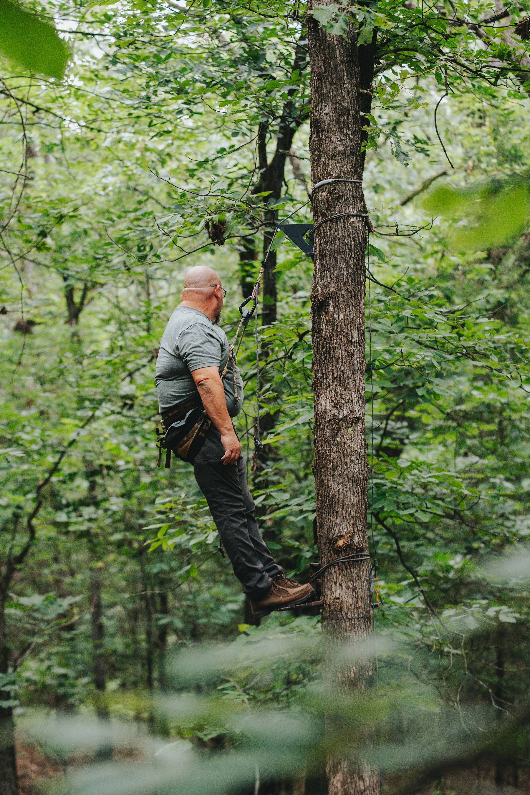 The HangLight pretty much eliminates pressure on your knees, allowing for a longer, more comfortable seated position when using a hunting saddle. Compatible with any attachment system that works with a button, it offers versatility without adding complexity.